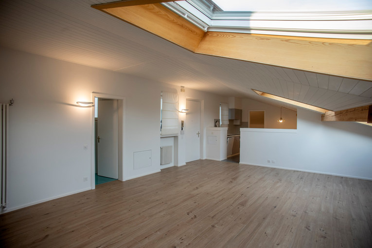 L’immobile è situato al 3° piano di un elegante stabile del nucleo storico del borgo, servito da ascensore, e si distingue per l’atmosfera luminosa e accogliente, valorizzata dalle ampie finestre Velux dotate di tende elettriche oscuranti e schermature solari esterne.