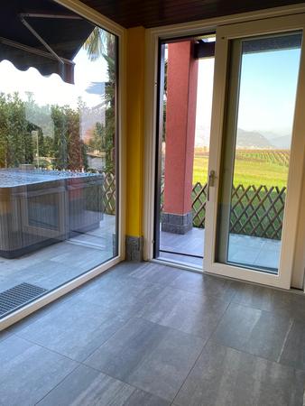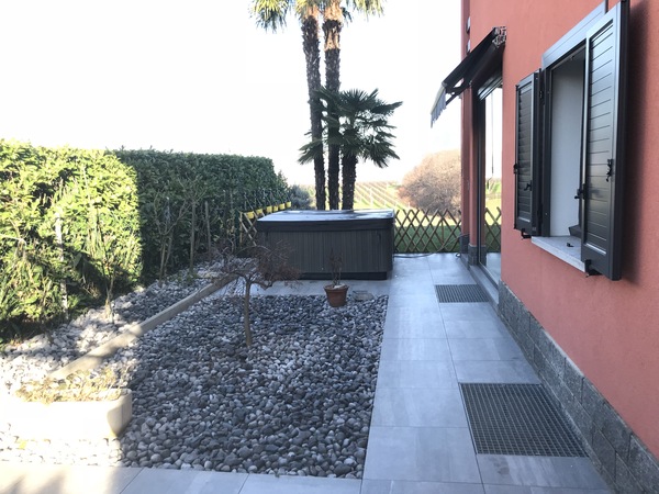 - Al piano terra, vi è un comodo ampio box, oltre a cortile per parcheggiare; piacevole ingresso, cucina moderna e raffinata con elettrodomestici di alta qualità, zona pranzo e un soggiorno con camino, atrio, wc con doccia e finestra, terrazza e veranda che porta al gradevole giardino nel quale troviamo una vasca idromassaggio jacuzzi;