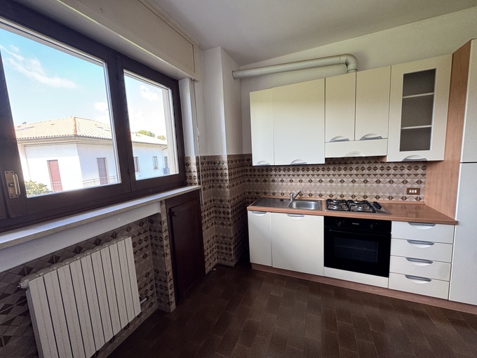 Al primo piano con ascensore, l’ingresso si apre su un doppio soggiorno con terrazzo, un ambiente arioso dove rilassarsi o ricevere amici. La cucina abitabile è comoda e ben organizzata, mentre la zona notte offre due ampie camere da letto e un bagno completo di vasca e doccia, ideale per le esigenze quotidiane di una famiglia.